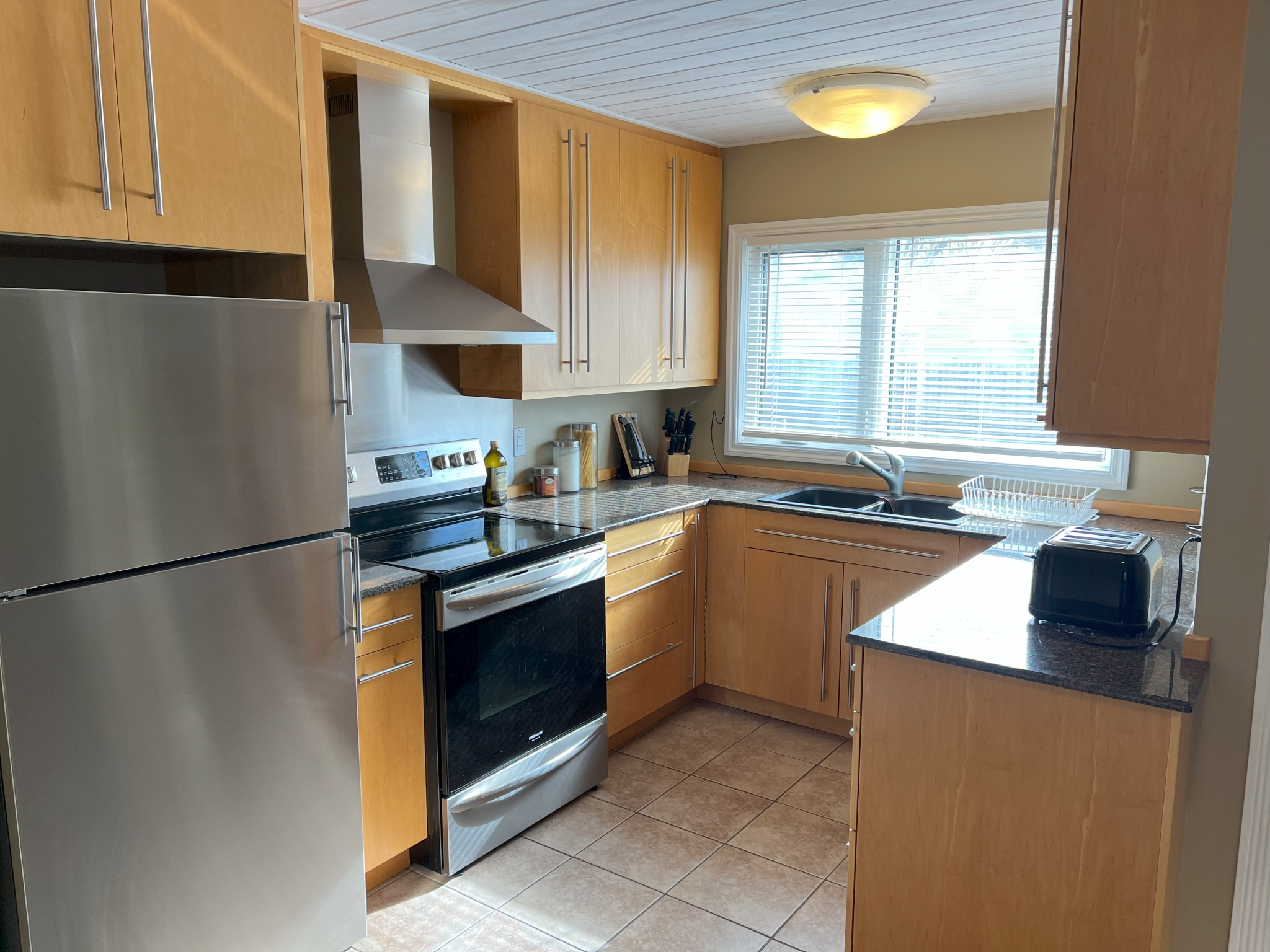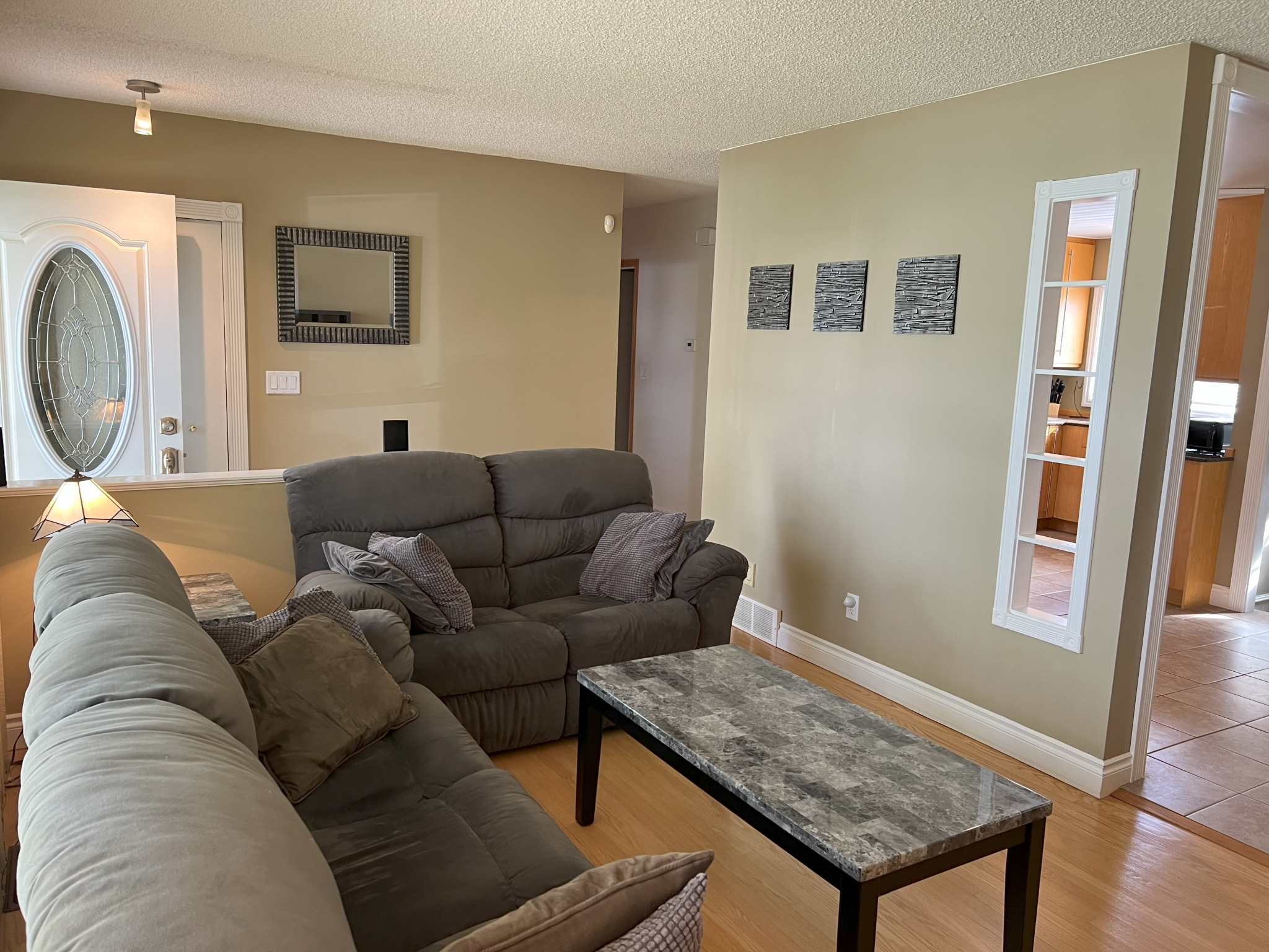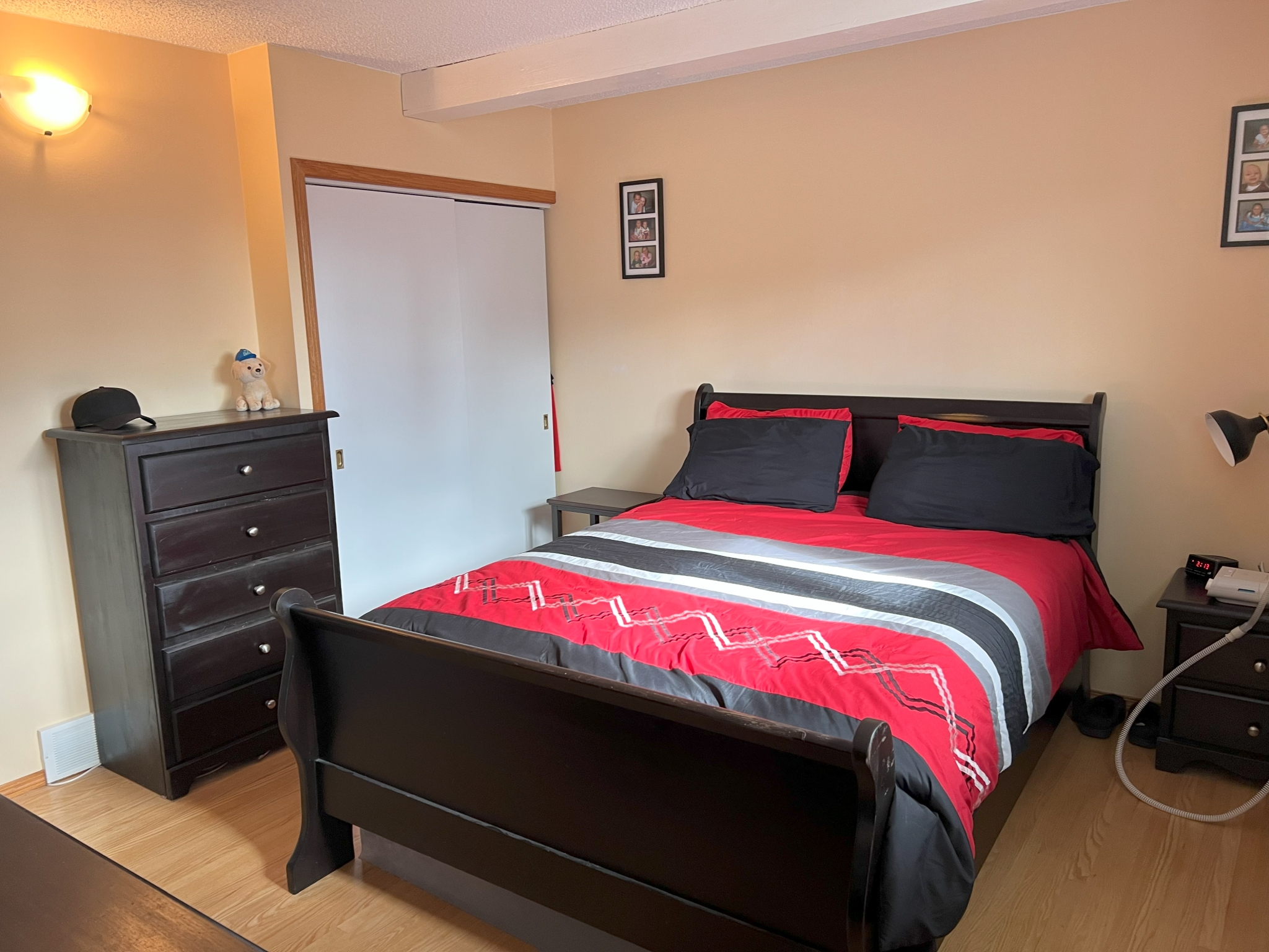 Fantastic 3 BR bungalow. Large open kitchen and dining area. Nicely upgraded maple kitchen with granite counters and stainless steel appliances. Spacious living area with beautiful hardwoods. Updated main bathroom. Primary bedroom with 2 pc ensuite. Full basement with a huge rec room and a large wet bar complete with loads of cabinets and a full size fridge. Plenty of storage in the utility area. Updated HE furnace and A/C. Over sized 16×22 single garage plus extra parking. Beautiful fenced backyard with patio. Close walking distance to all levels of schools, parks and bus.